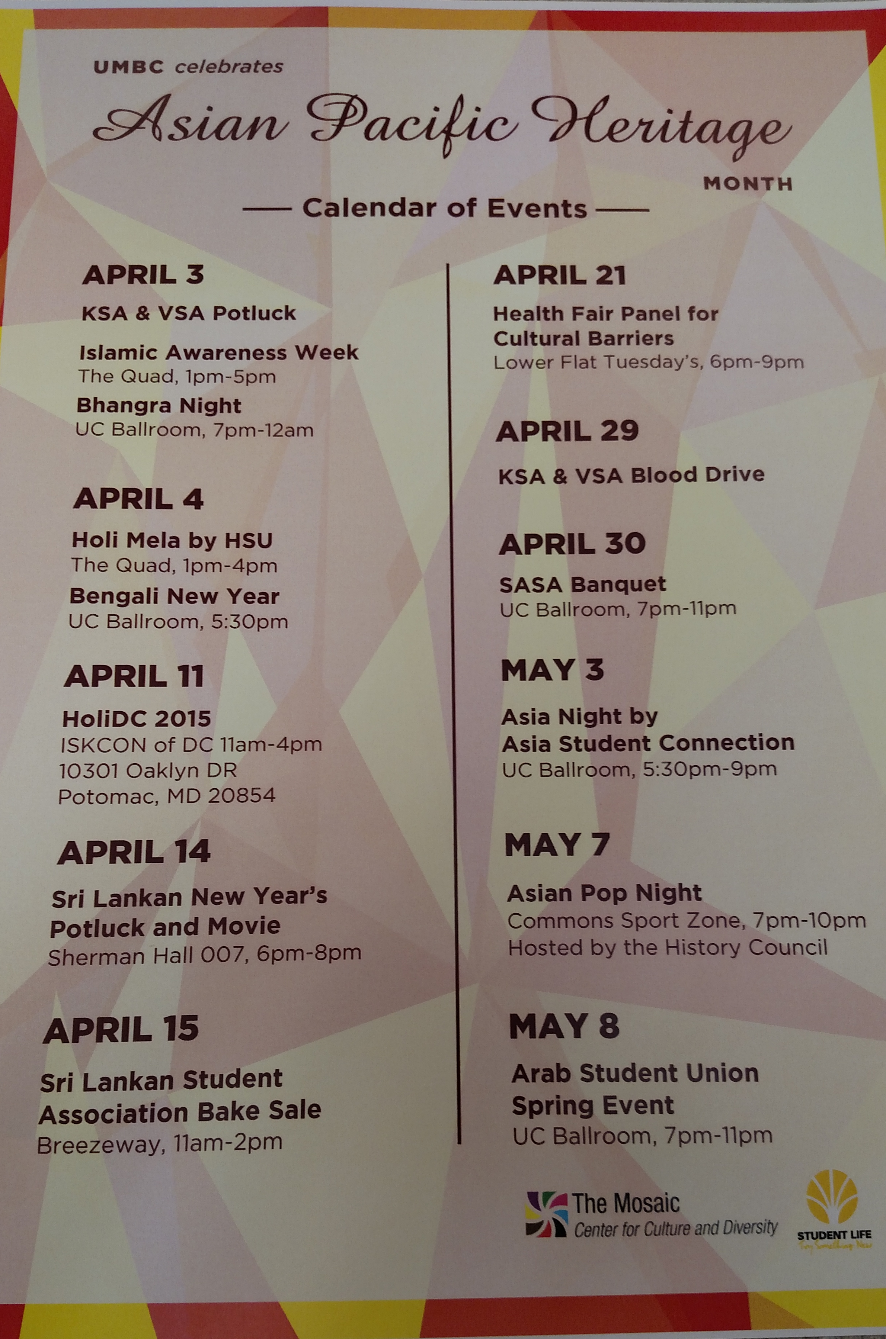As you can imagine, this just a cross-section of the many on and off-campus events happening in recognition of National Asian Pacific American Heritage Month throughout the month of April and May. If we