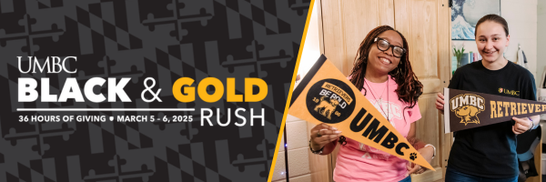 We hope this message finds you well. We have an incredible opportunity to make a meaningful impact by participating in the Black & Gold Rush—UMBC's annual fundraising campaign dedicated to supporting our students. TheBlack & Gold Rush is more than a fundraising campaign; it is a chance to showcase the impact of our work and rally our community to support UMBC students. This year's goal is 1,966 donors; every gift helps strengthen student programs and services. Just $10 will go a long way in supporting our students.