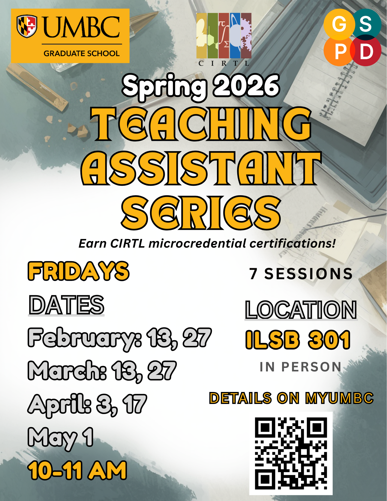 Join us this spring for the Spring Teaching Assistant Series, a 7-session professional development workshop series designed to support Teaching Assistants and Postdocs in building effective, inclusive, and transferable teaching skills.