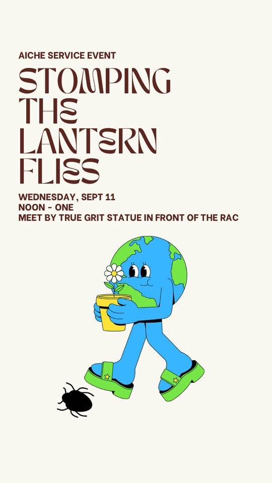 Join AICHE as we take a stroll around campus and stomp out lantern flies to save our trees!