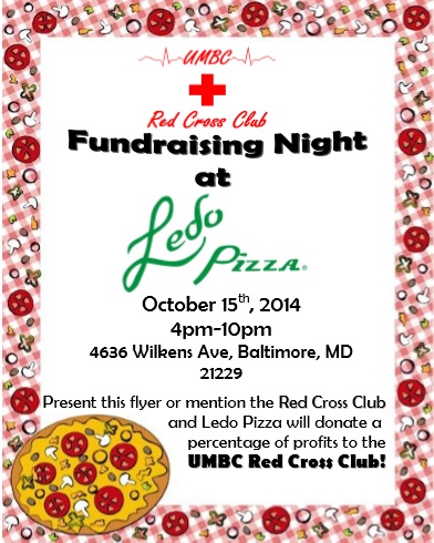 Who doesn't love pizza, wings, and great food? Come out and support the UMBC Red Cross Club while indulging in these delicious foods at our Ledo's Pizza fundraiser on October 15th!