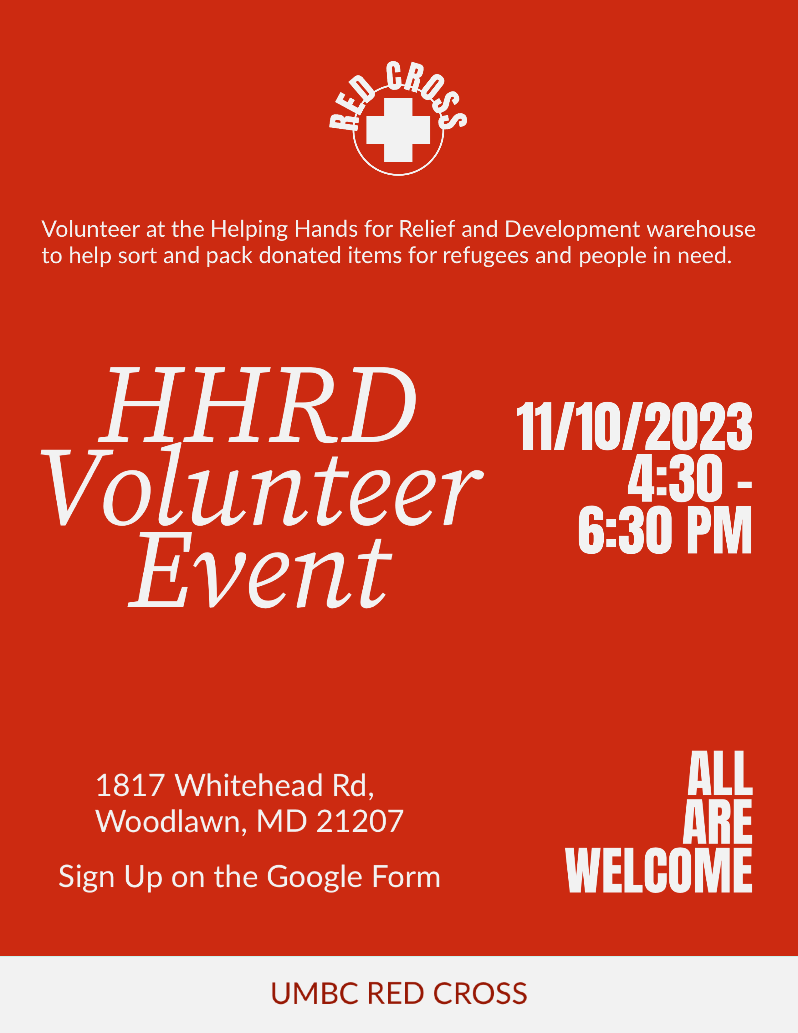 Come out to volunteer at the HHRD warehouse to help sort donated items to be sent to places in need. We will be there from 4:30 PM to 6:30 PM this Friday, 11/10/23 at 1817 Whitehead Rd, Woodlawn, MD 21207. If you need carpooling, reach out to us.
