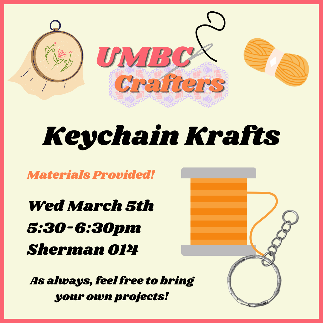 Hey Stitches special GBM tonight!! We will be bringing keychain materials for you to use to make your own keychain or bracelet. As always, feel free to bring your personal projects!