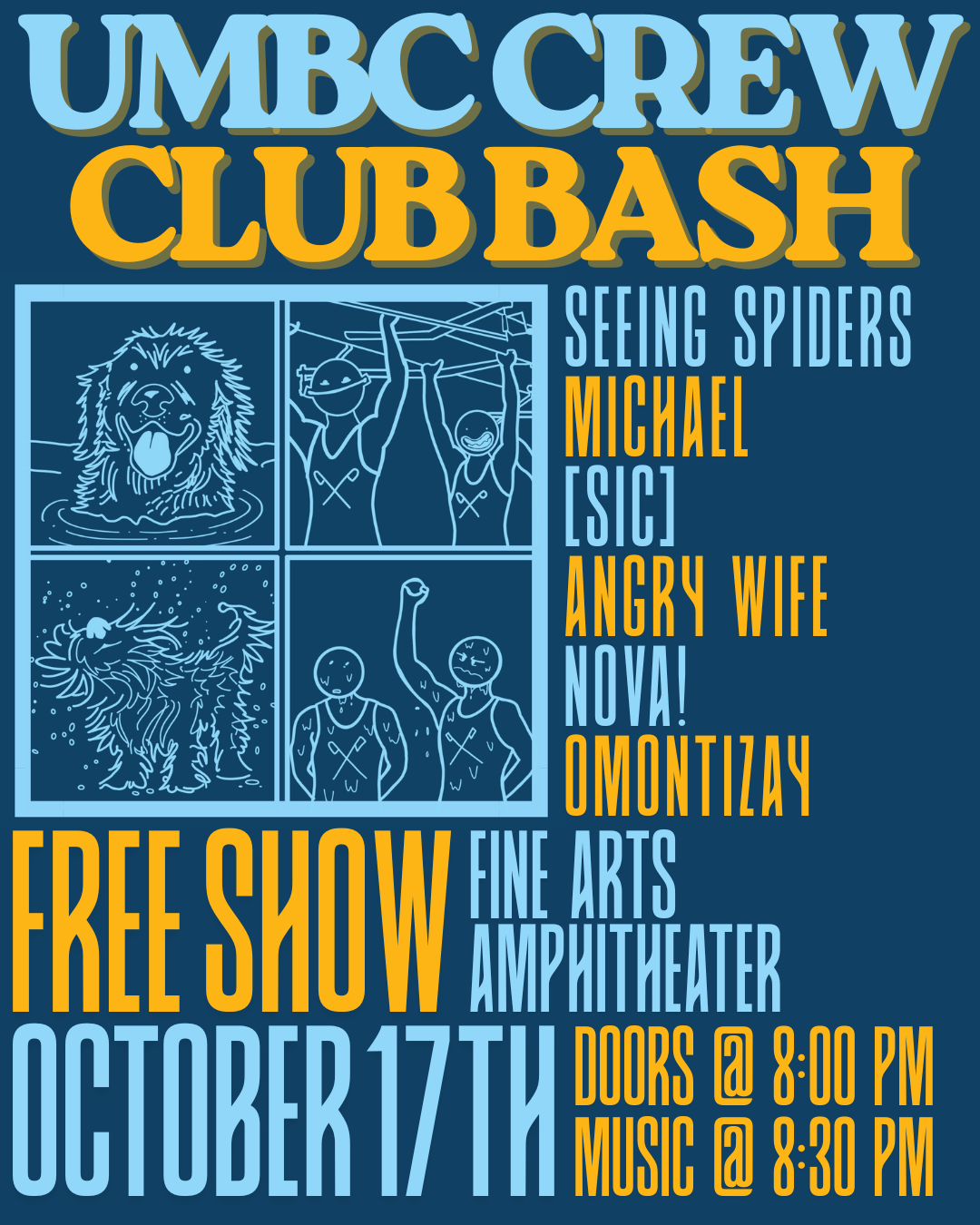 We will be hosting a music event featuring 6 on-campus bands and artists! We will also be selling baked goods, drinks and t-shirts-- all funds going to supporting your local crew team.
