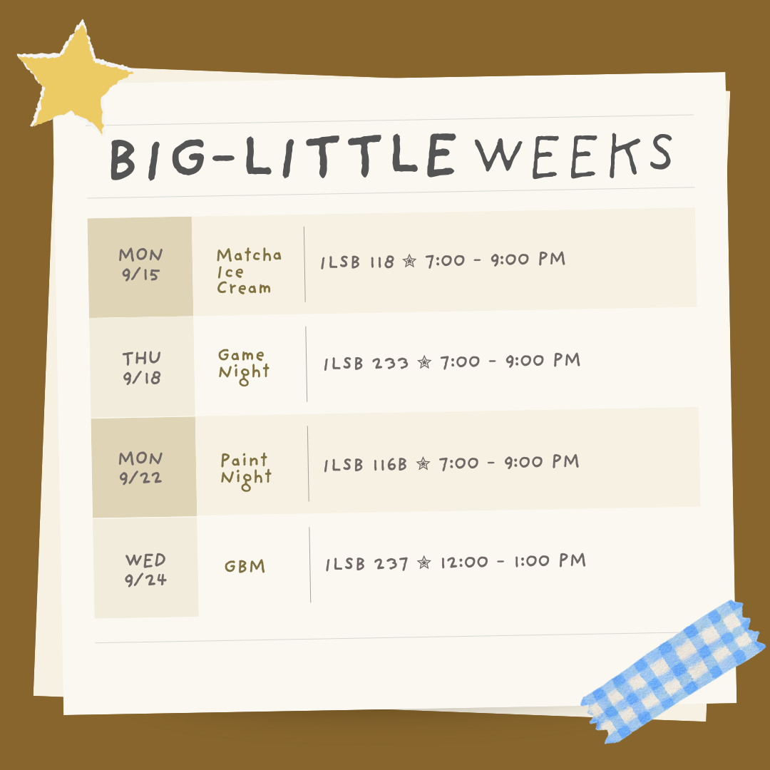 We are thrilled to welcome both our returning and new members to another year of CSA :D ! CSA has many cultural and social events in store for you this upcoming school year, including our Big and Little Week right around the corner!!