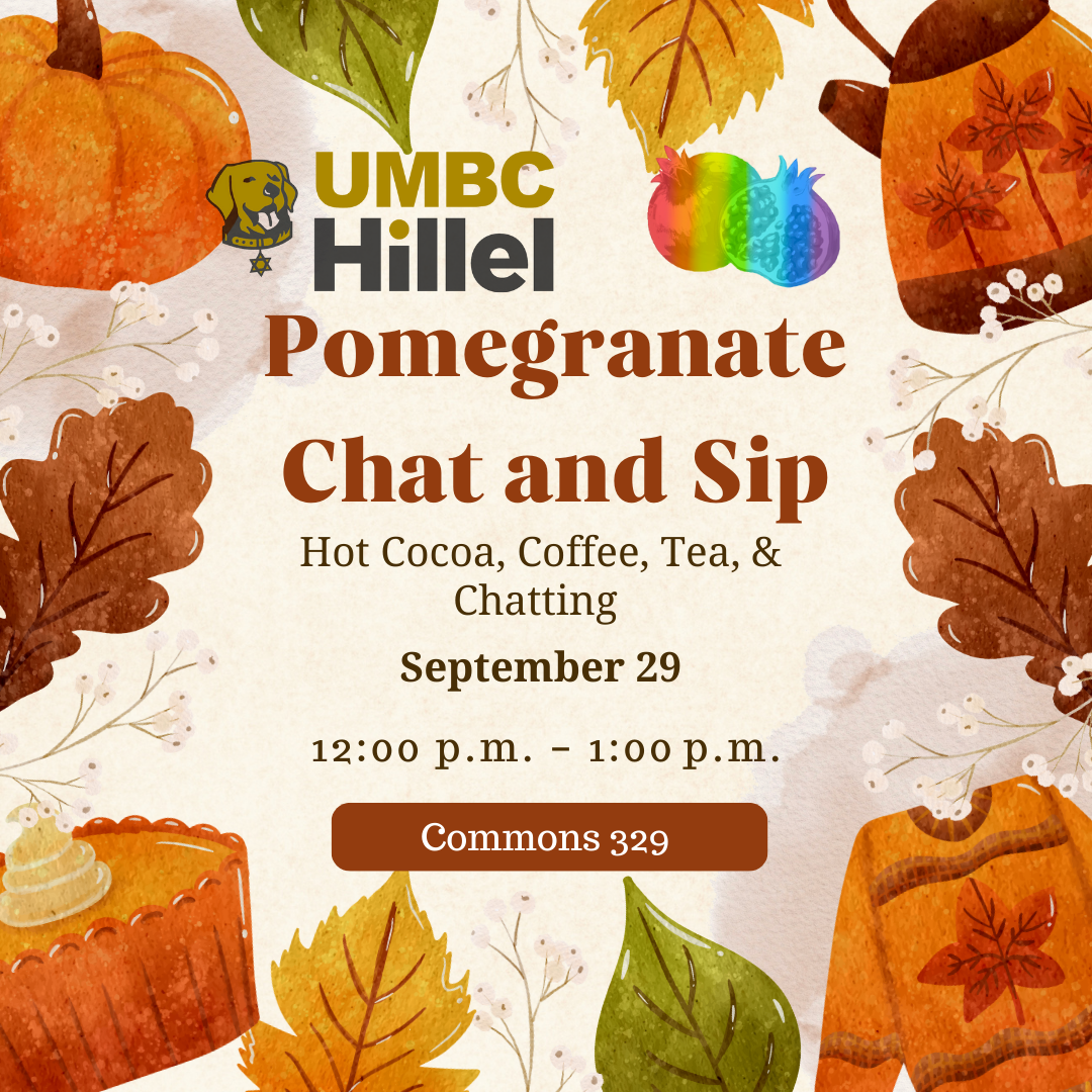 Join Pomegranate, Hillel's Jewish LGBTQ+ affinity group, for warm beverages during free hour! Come schmooze and hear more about Pomegranate from the committee chairs, Aron and Rutti.