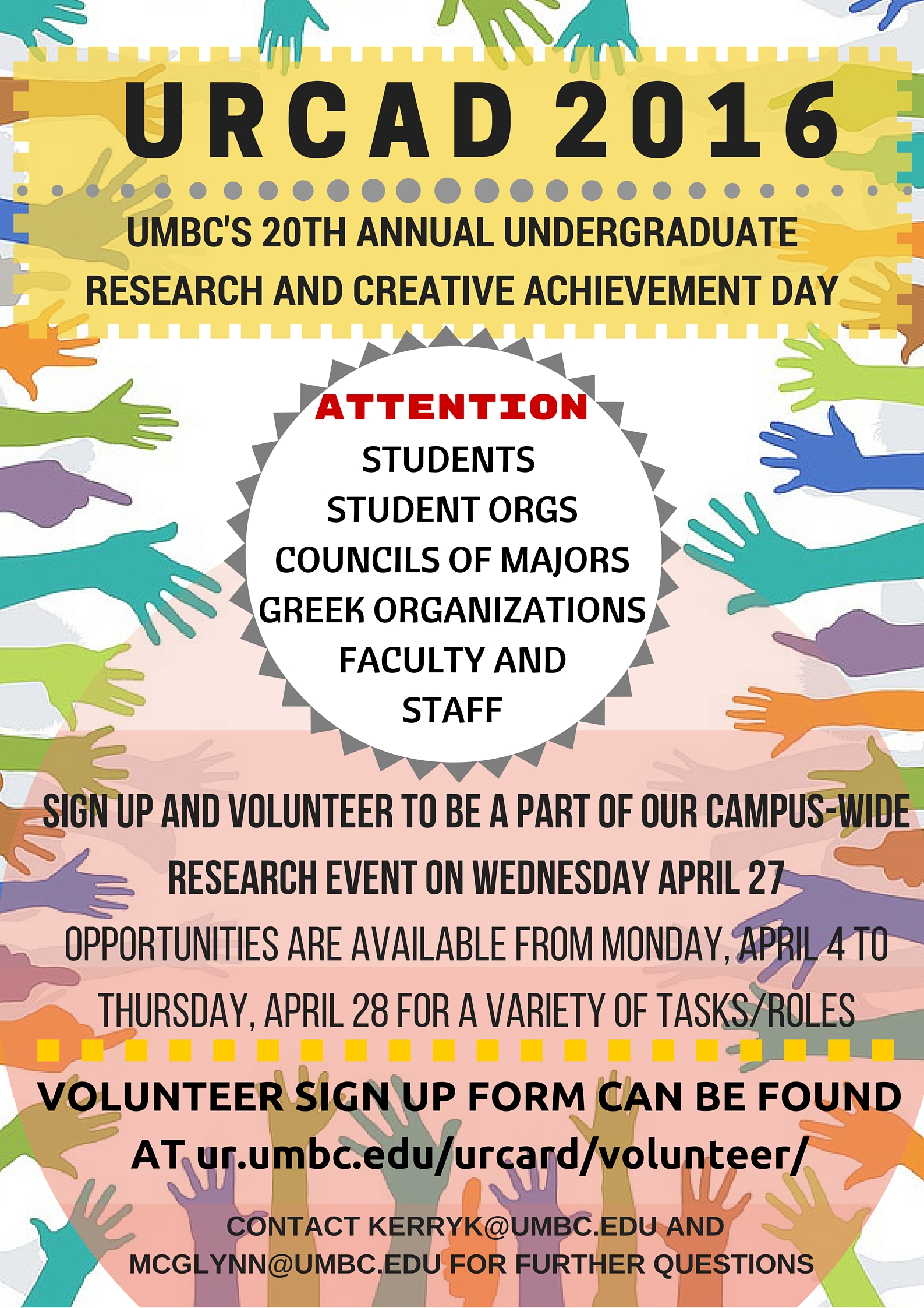 Undergraduate Research and Creative Achievement Day (URCAD) will be on Wednesday, April 27.