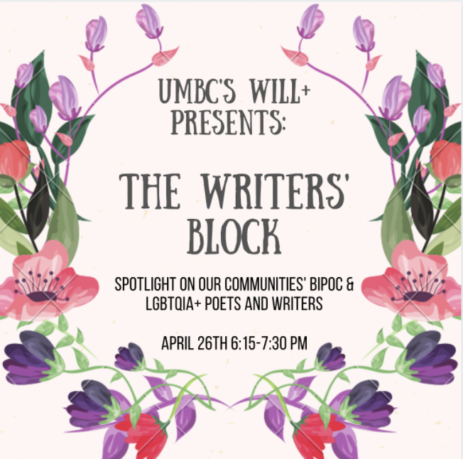 Join us on Monday, April 26th from 6:15-7:30 pm for “The Writers’ Block,'' a panel discussion spotlighting our communities’ BIPOC & LGBTQIA+ poets and authors. This panel is the first of a two-part series on ‘Community Connections’ in collaboration with the LGBTQ+ Student Union. Check out the LGBTQ+ Student Union’s myUMBC page here to stay up-to-date with their upcoming panel event!
