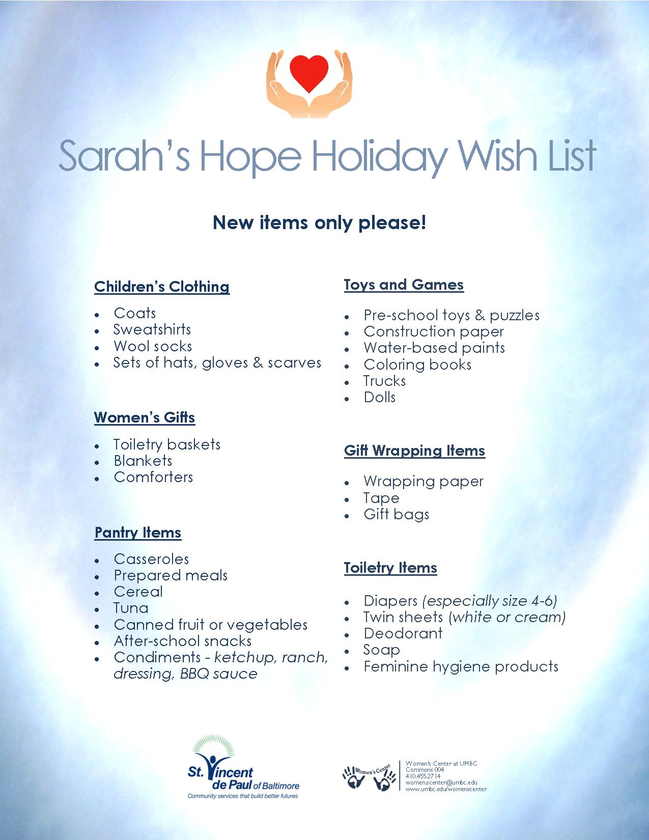 The Women's Center would like to send a special thanks to everyone who contributed to the Sarah's Hope donation drive! We were both impressed and touched by all the donations. Because of you, someone's day will be brighter!