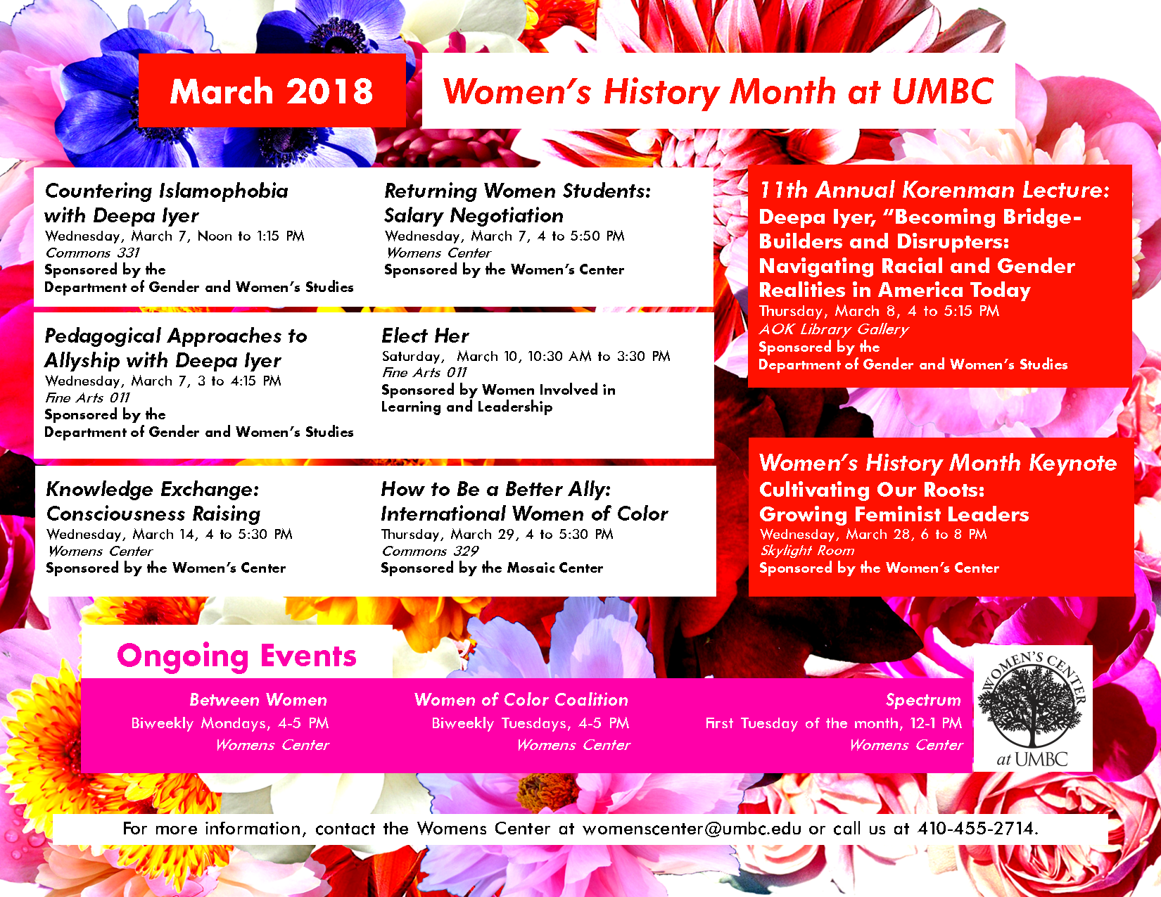 For a list of all the campus events, download the calendar below. Follow the Women's Center on Facebook, Twitter, and Instagram for updates throughout the month.